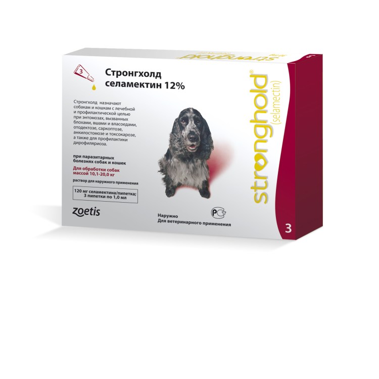 Zoetis стронгхолд 120 мг, капли для собак 10-20 кг (3 пипетки х 1 мл)
