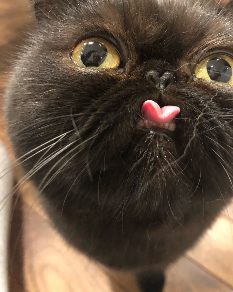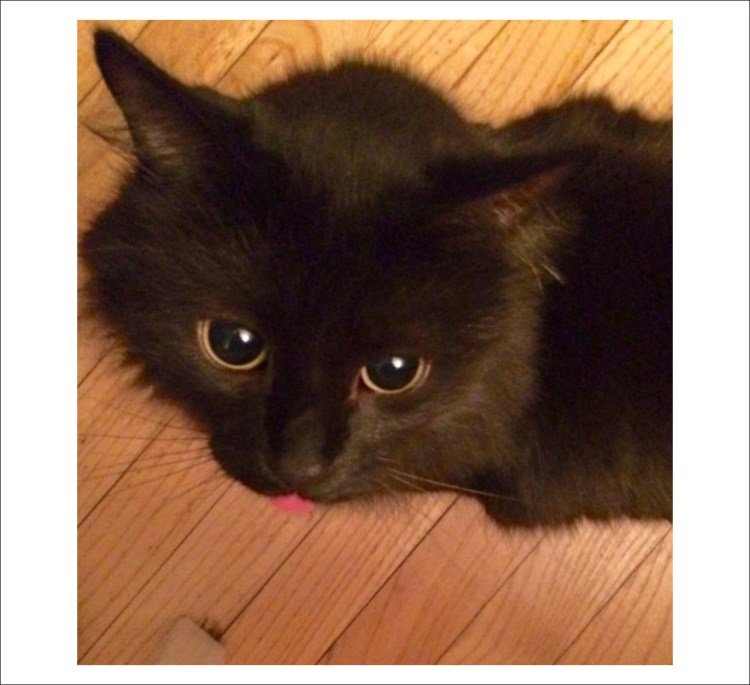 Черная кошка с высунутым языком