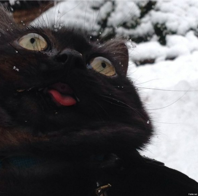 ![Черный кот с высунутым языком Мем]()
