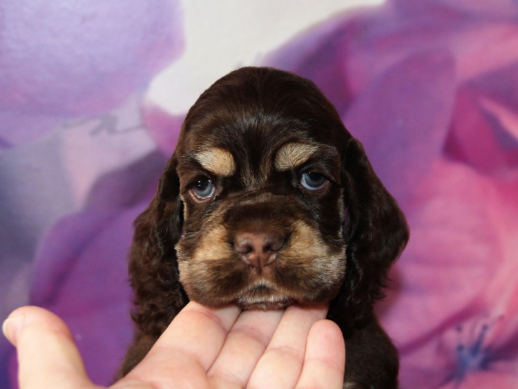 ![Английский кокер спаниель купить в Москве черно подпалый]()