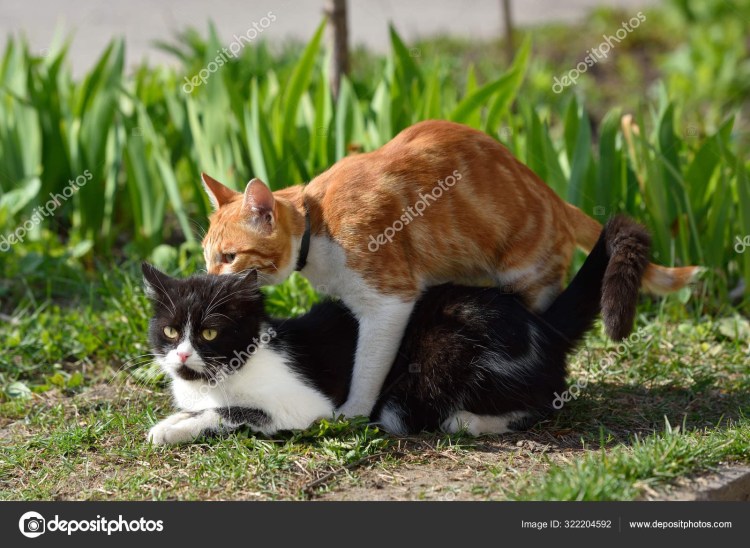 ![Кошки занимаются спариванием]()