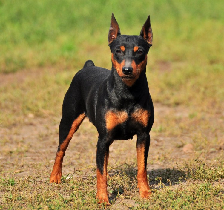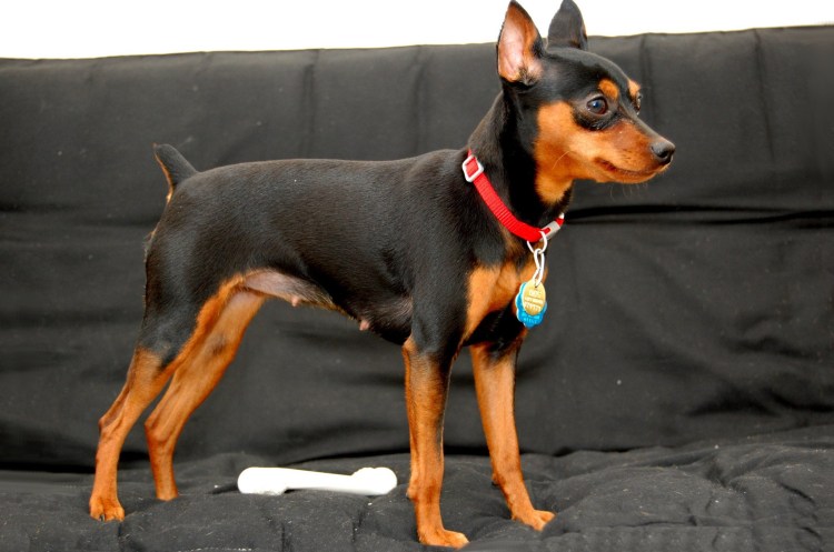 ![Карликовый пинчер в профиль]()