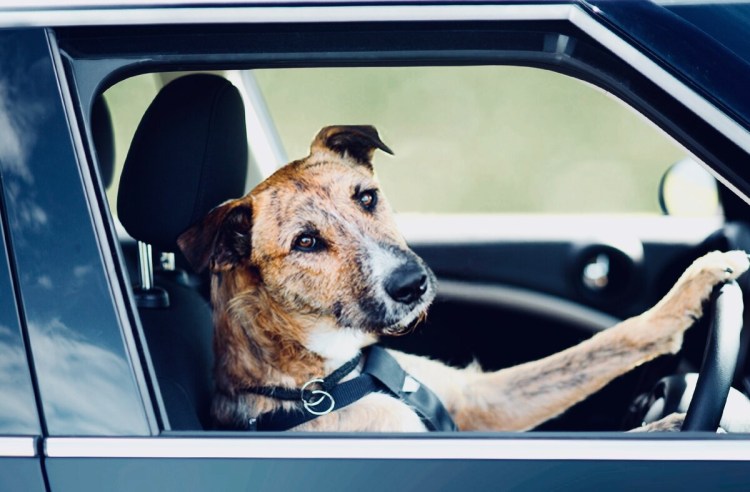 ![Собака в машине]()