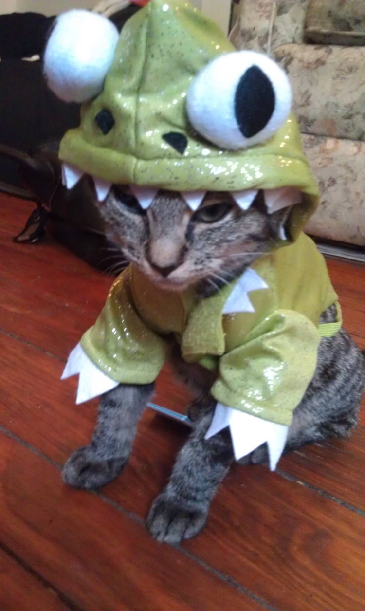 Кошка в костюме лягушки