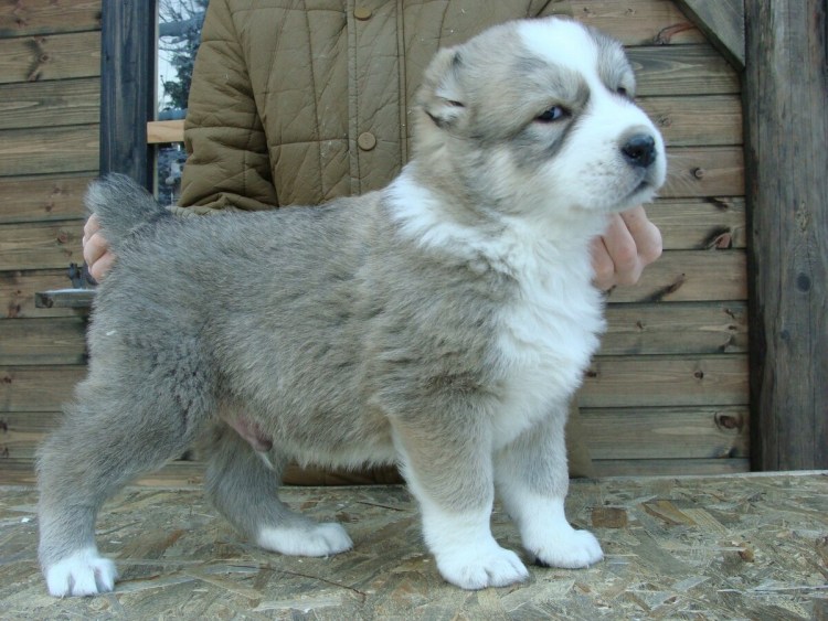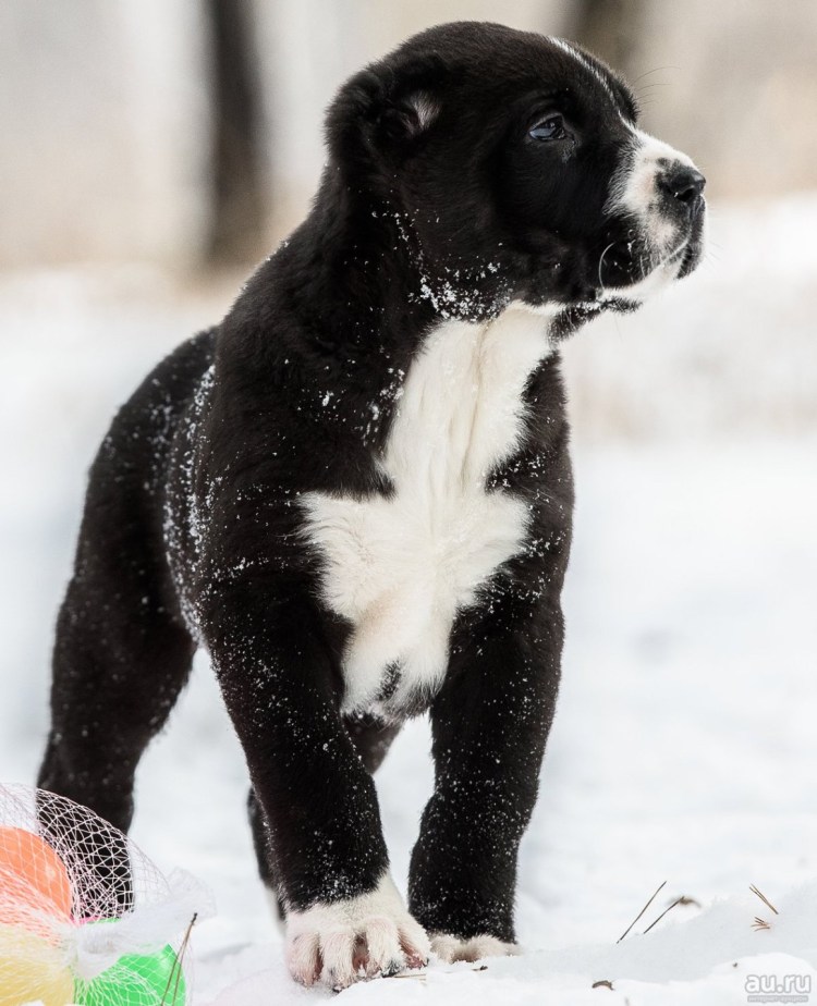 ![Собака Среднеазиатская овчарка алабай зимой]()