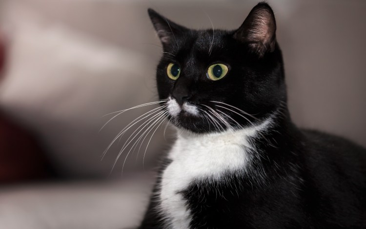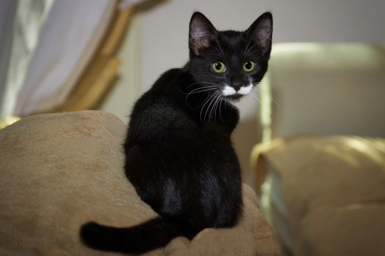 Чёрный кот с белой грудкой