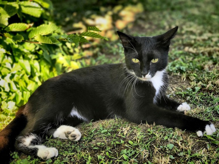 Кот черный с белыми лапами пофигистом