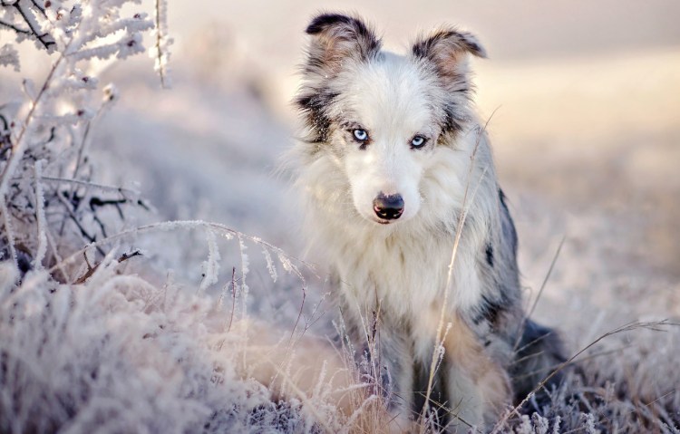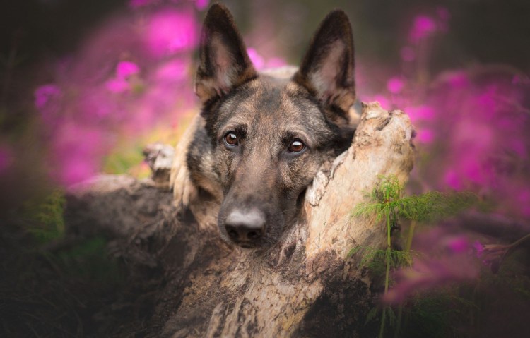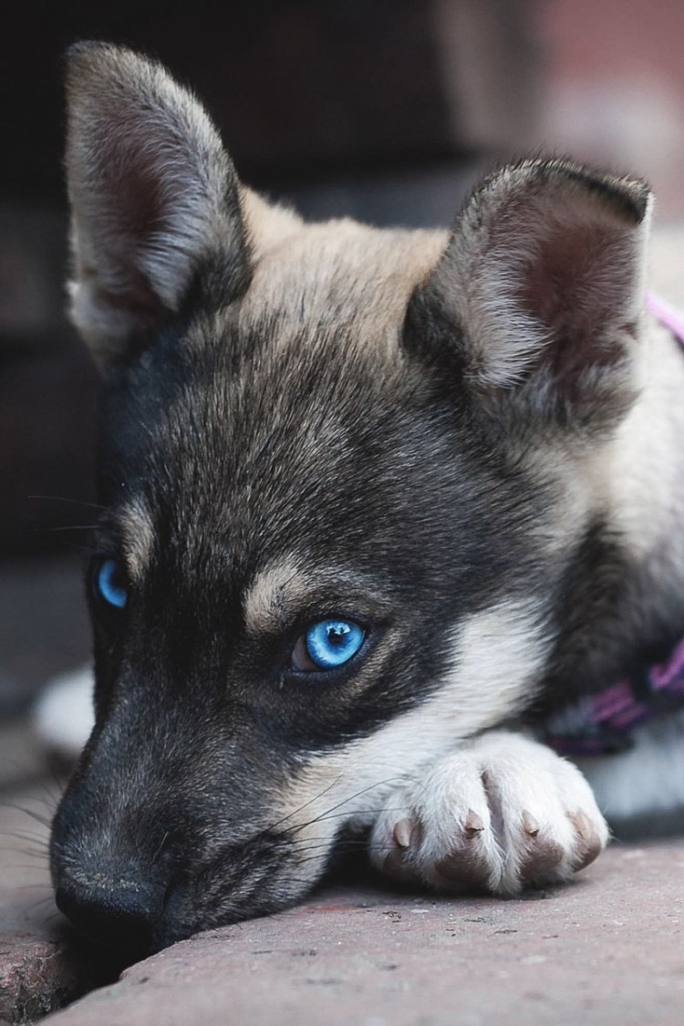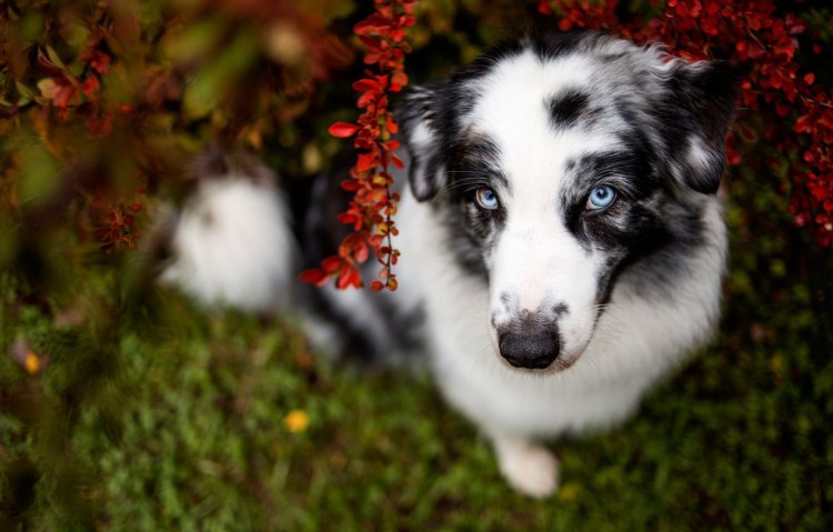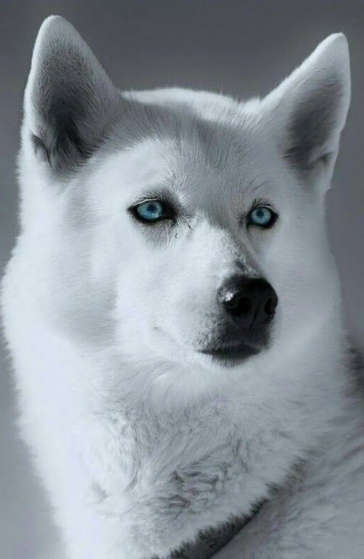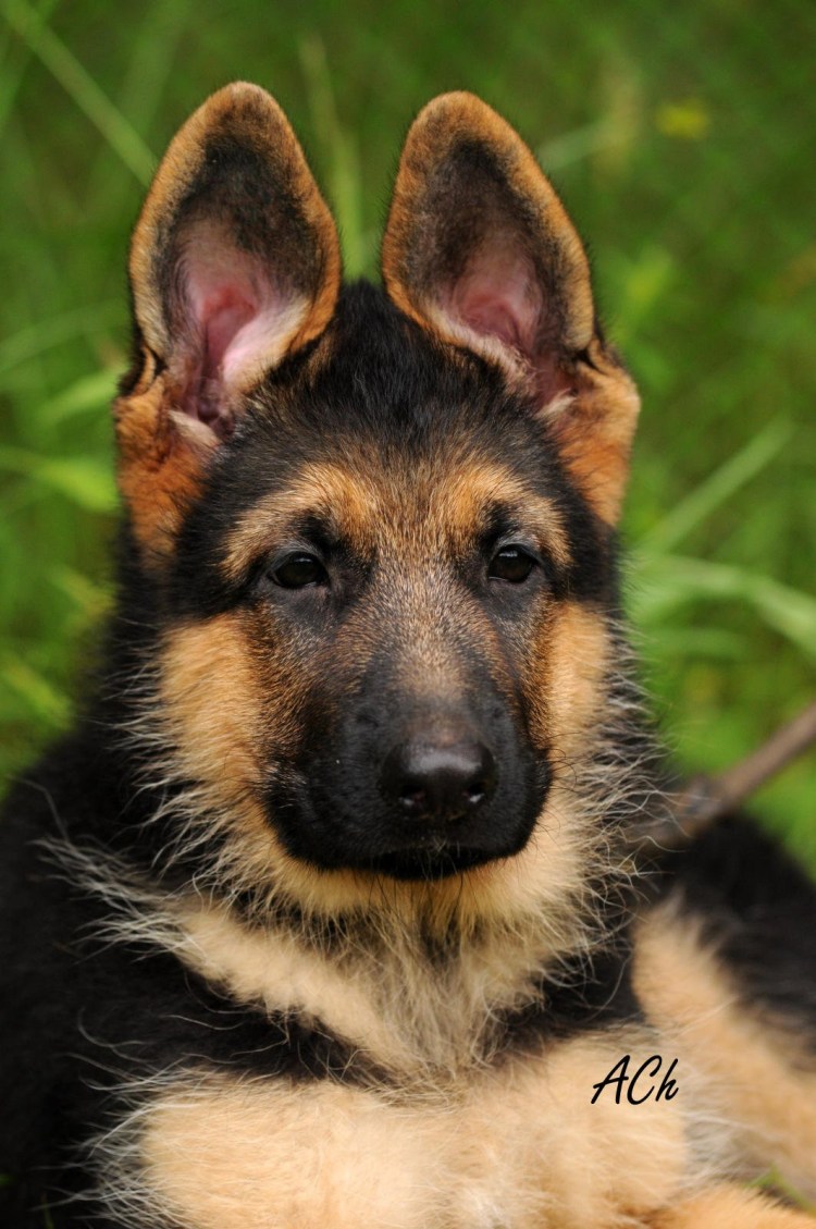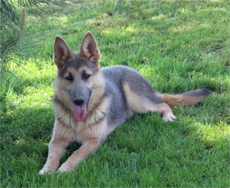 ![Чёрная немецкая овчарка с голубыми глазами]()