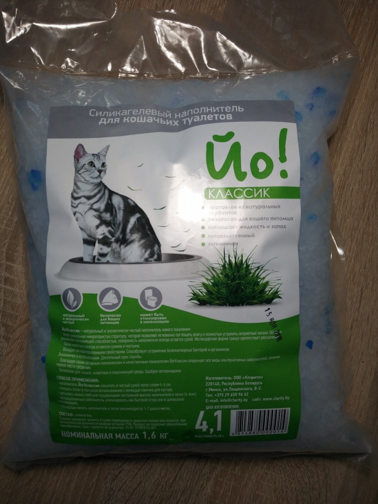 Силикагелевый наполнитель Crystal clean для кошачьего туалета