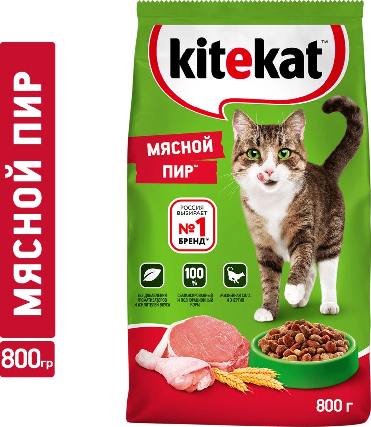 Корм Kitekat д/кошек мясной пир сухой 350г
