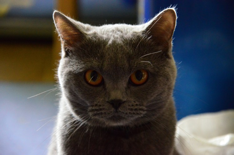 ![Серый кот с карими глазами]()