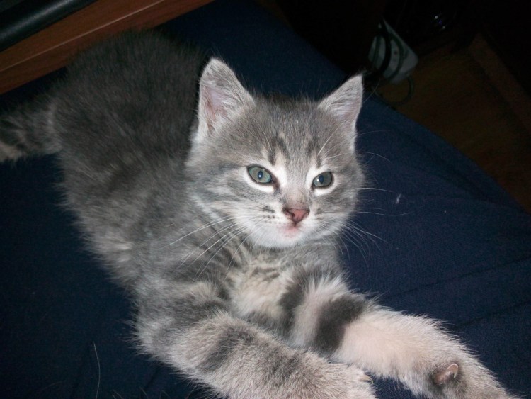 Метис с британцем кошка серый