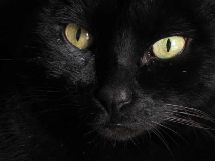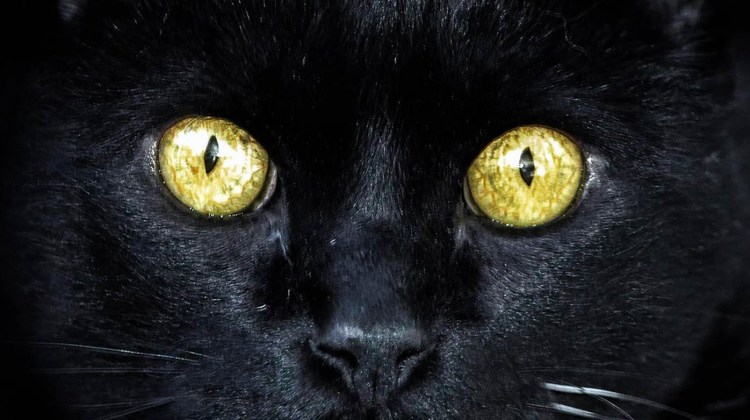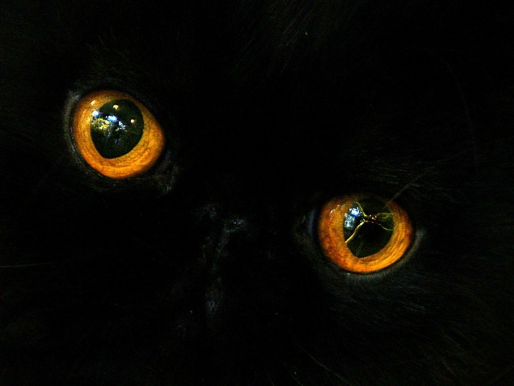 ![Черный кот со светящимися глазами]()