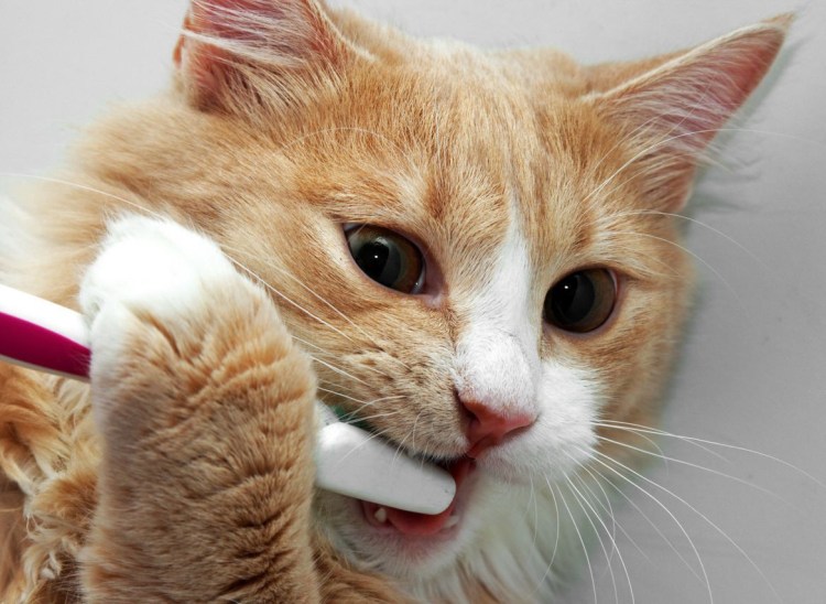 Кот с зубной щеткой