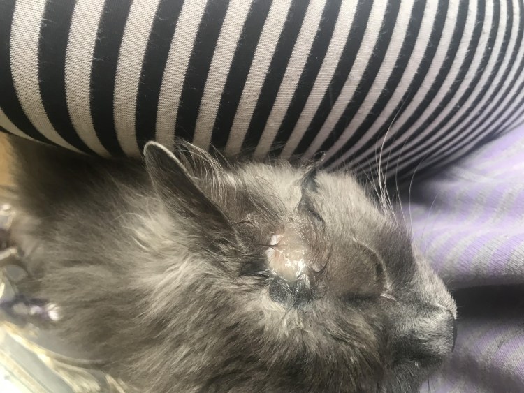 У новорожденного котенка шишка на глазу
